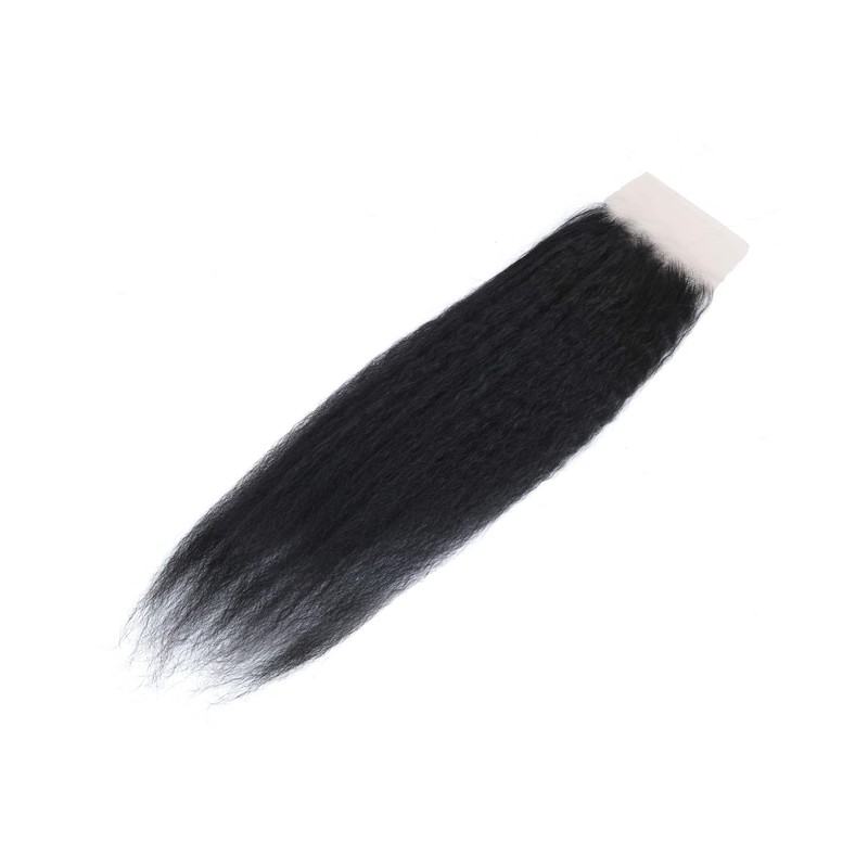 - Kinky Straight Human Hair 4x4 Lace Closure Material: 100% remy brazilian kinky hair bundles, no tangle minimum shedding, can be styled and treated like your own hair, 210 degree and keep it for 10 seconds to curly the yaki human hair closure.