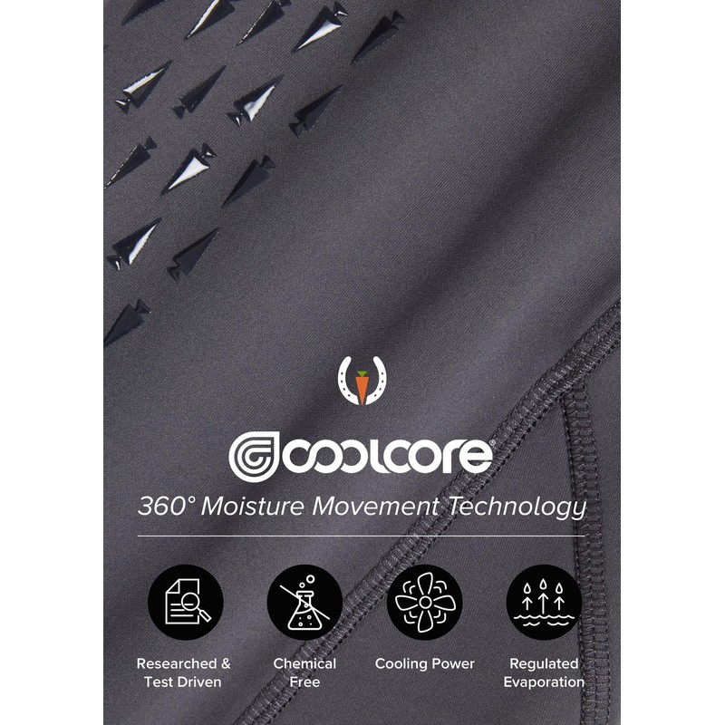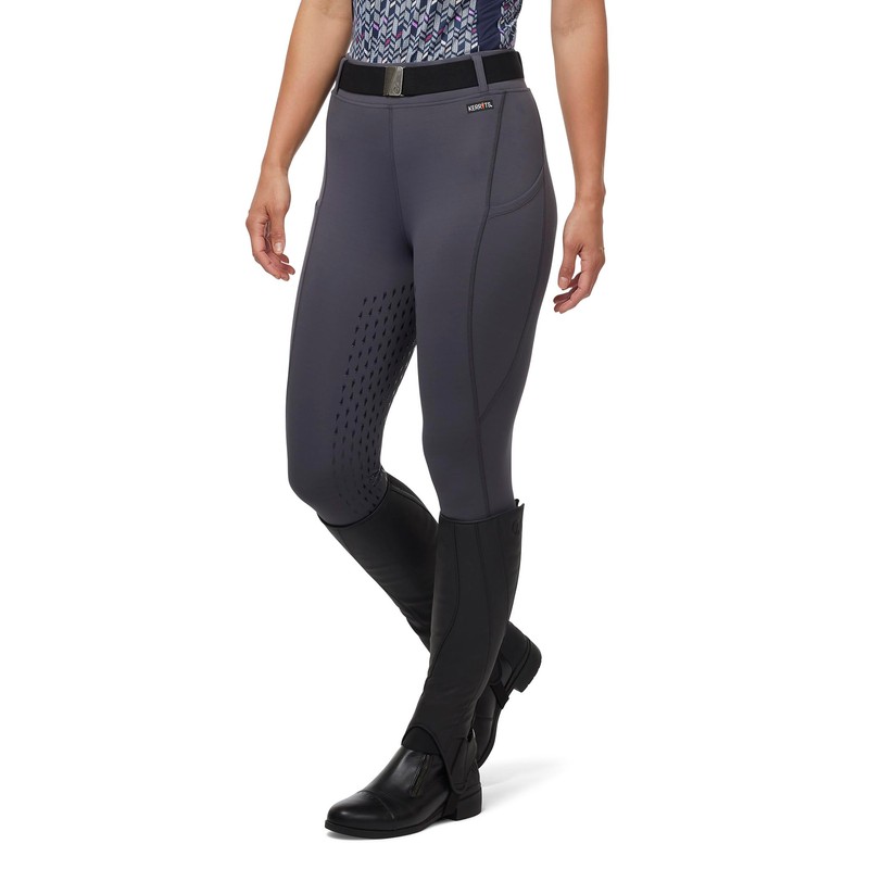 Kerrits Ladies Coolcore Tech Tight Ideal for the hottest days, these horse riding tights deliver lightweight, confidence boosting coverage and figure flattering support in an athletic equestrian tight. Maximize performance through thermoregulation with Coolcore(R) technology. Engineered with 360 moisture movement, the chemical-free, recycled fibers wick and disperse body heat to keep you (and the earth) cooler. Full leg, Kerrit Sticks Silicone adds breathable grip from inner thigh to calf. The two-inch comfort waistband with belt loops takes you from sporty to a more polished look; two side pockets let you carry snackable carrots. Features: Coolcore(R) Stretch Interlock fabric provides multi-season versatility and exceptional year-round temperature regulation, naturally managing and quickly distributing moisture and body heat through mechanically engineered, thermo-controlled evaporation Keeps riders cool and comfortable in high heat conditions Four-way stretch, interlock construction provides great mechanical stretch and recovery, excellent support, and figure flattering coverage UPF+50 sun protection 2 1/4"comfort waistband with belt loops Two low-profile side pockets keep riding essentials handy Flat, no-chafe seams are thoughtfully placed for in-saddle comfort and performance Kerrit Sticks Silicone provides full leg grip with an equal ratio of stretch and breathability, with contact from the inner calf up through the inner thigh Wash cold, tumble dry no heat 86% nylon / 14% elastane 100% Silicone Kerrit Sticks
