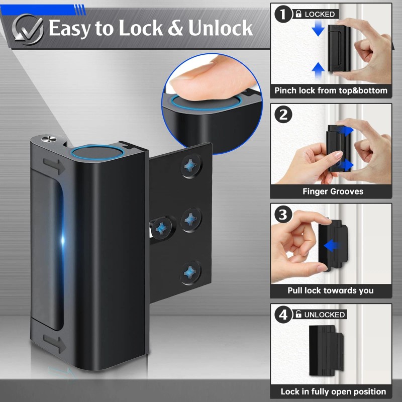 Use power screwdriver and drill to mount security door lock on your door frame, finish door lock installation less than 5 minutes. Easy to match any inward swinging door. CCJH safety door lock guard your home security as a door defender.