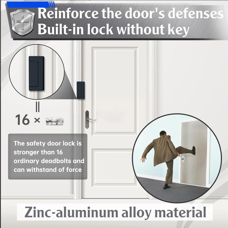 Use this high security door reinforcement lock for additional home security on any swing-in door of any door thickness. It helps to ensure any door cannot be opened from the outside.
