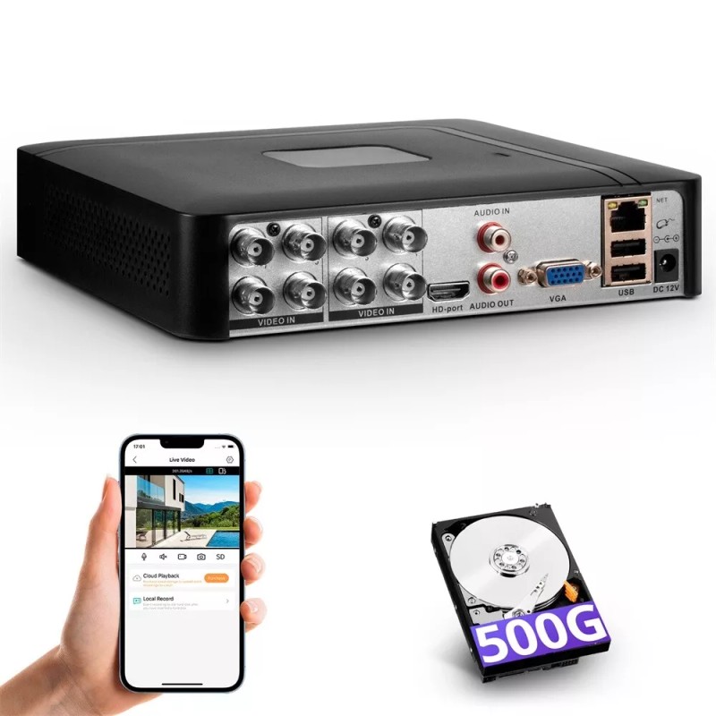 KERUI 4CH 8CH H.265+ 2MP DVR Recorder 500GB HDD for CCTV Camera Security System - 4CH, 500GB