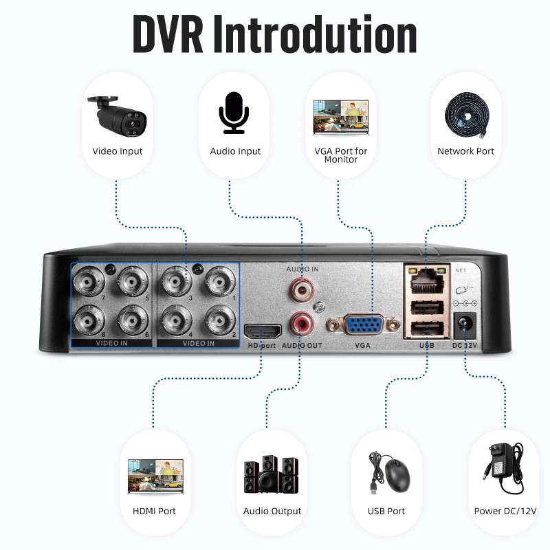 8 Channel CCTV DVR Recorder, Full 1080p HD Surveillance DVR for Security Camera
