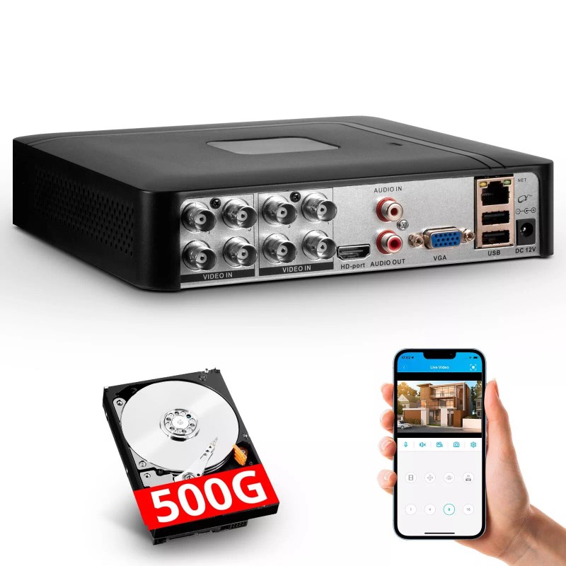 H.265+ Security 8 Channel Surveillance Digital Video Recorder with 500G Hard Drive, Easy Remote Access,