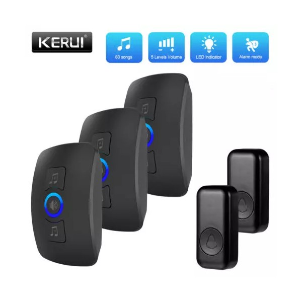 KERUI New Wireless Doorbell Chime Waterproof Plugin Receiver Adjustable Volume 1000FT - 2 Buttons+3 Receiver