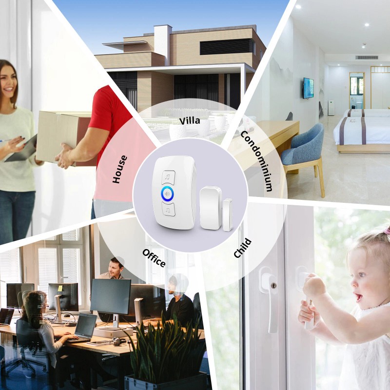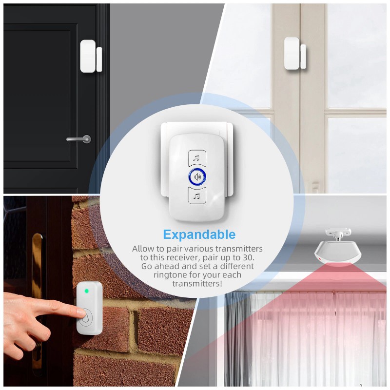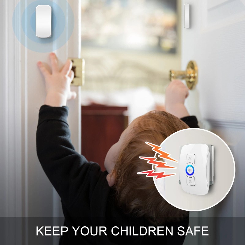 500 feet far enough to cover every door and window in your house. Each wireless doorbell receiver can pair up to 20 magnetic door alarm sensors and each sensor can add unlimited receivers.