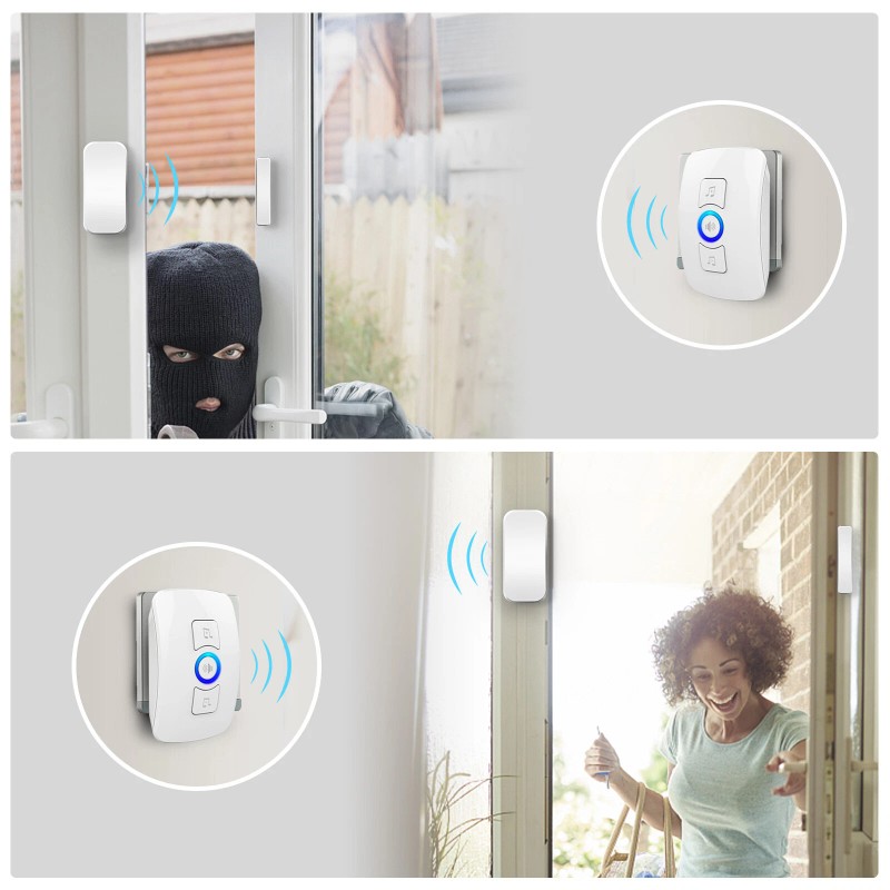 This business door entry chime alerts when burglar opens door and helps deter break-ins(wireless door alarms activates when magnetic sensor separates