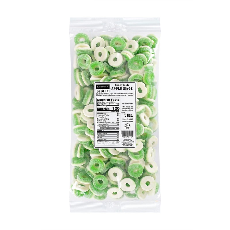 Kervan Candy Bebeto Apple Rings - Fruity, Soft, Sweet & Sour Gummy Ring Candy Bulk for Kids, Gift Snacks and Parties - Apple Gummies Big Party Size Bag (5 lbs)