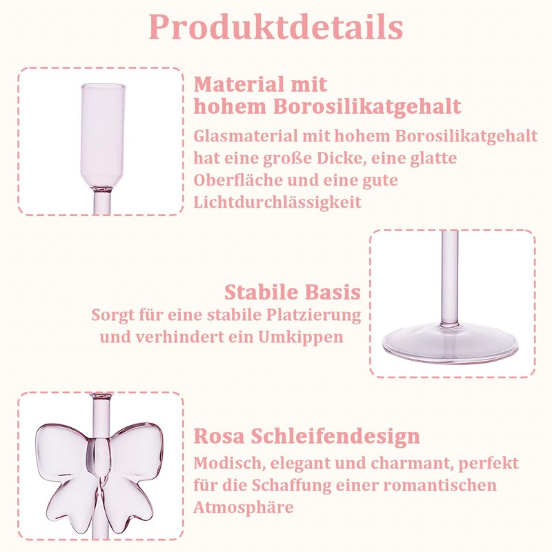- Rosa Schleifendesign: Der Glaskerzenhalter verfügt über ein rosa Schleifendesign. Das Anzünden der Kerzen und flackernde Lichter in ruhigen Nächten schaffen eine schöne und romantische Atmosphäre für Familienessen, Partys oder zu Hause