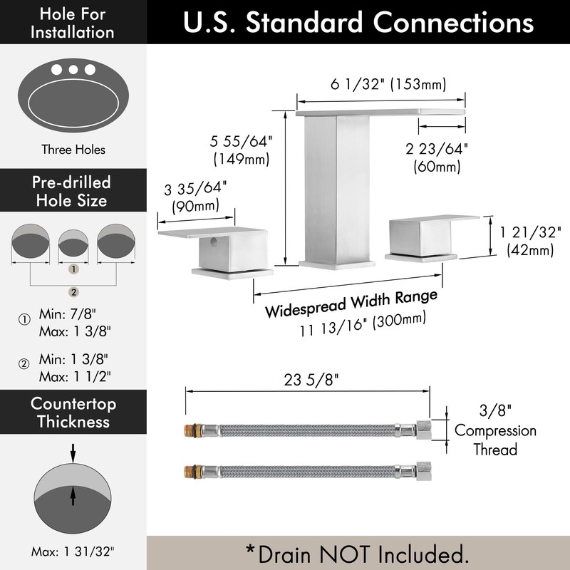 Product Information: Experience pure luxury with the silky waterfall flow of brushed nickel bathroom faucet. Its perfectly shaped water flow replicates the serenity of a natural waterfall, providing a soothing and rejuvenating experience. The exquisitely thin spout design enhances your bathroom's visual appeal and sophistication. The lead-free brass body ensures safe drinking water, complying with the standards. Its rustproof and durable finish exceeds common standards, offering superior corrosion resistance, rust resistance, and scratch-proof performance. Installing this bathroom sink faucet is a breeze with quick connections and a one-piece handle body. The mounting hole diameter is designed to fit the standard faucet hole size, making installation hassle-free.