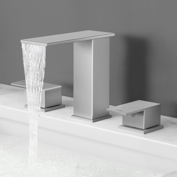KES Bathroom Faucets for Sink 3 Hole - Waterfall Widespread Bathroom Sink Faucet - 8-Inch Vanity Faucet with cUPC Supply Lines - All SUS304 Stainless Steel, Brushed Finish, L4358LFF12-BS