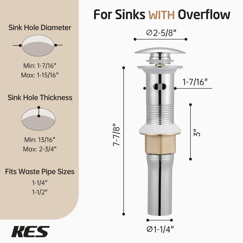 - [All-metal] KES chrome pop up sink drain is crafted from premium SUS304 stainless steel and brass, ensuring exceptional durability.