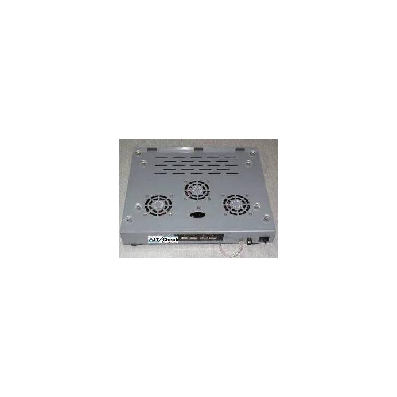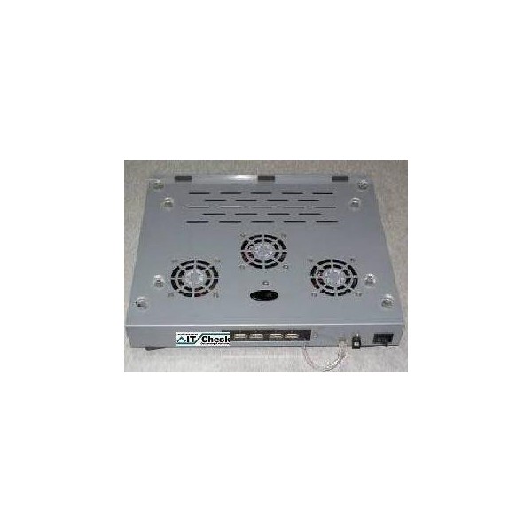 - A laptop cooler pad made of metal. Three fans are connected via the USB port