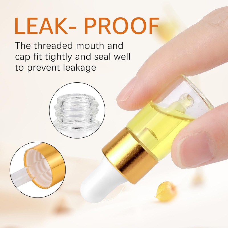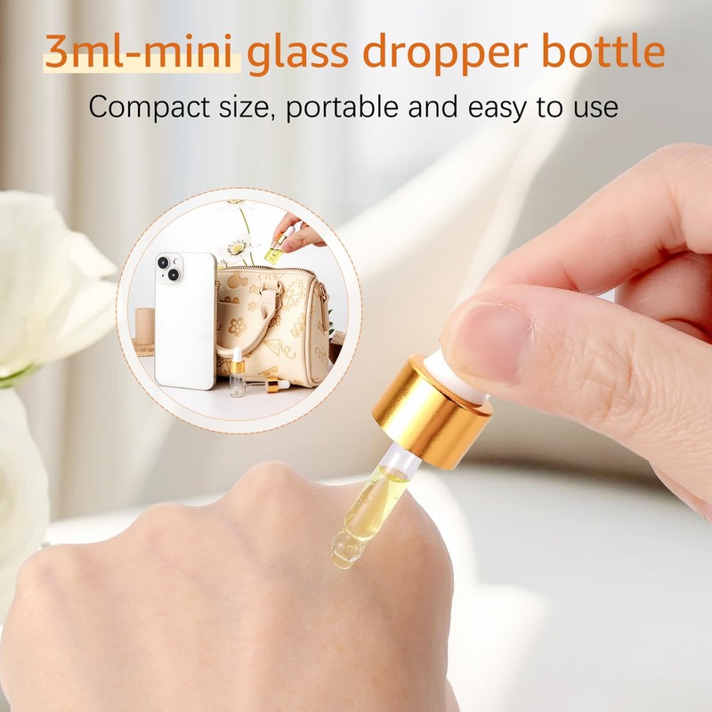 - Easy to use: 3 ml mini glass bottle with dropper, easy to display samples and use. Simply squeeze and control the liquid, easy to fill and dispense. Each bottle comes with an easy-to-use dropper, allowing for precise dispensing and preventing spillage