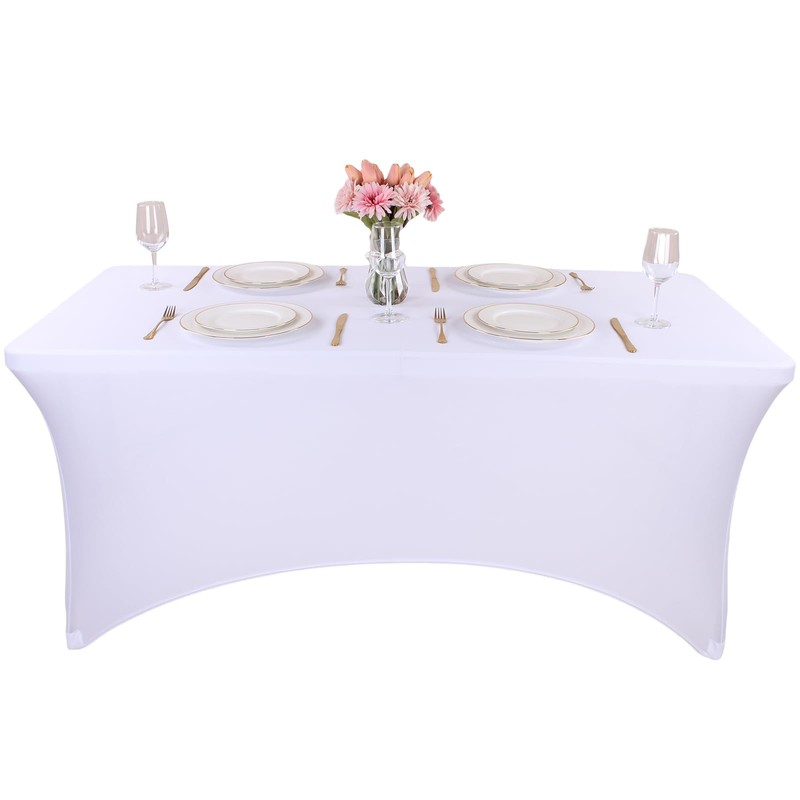 Kesfey Stretch Spandex Table Covers for 8FT Tables - 8 FT Universal Rectangular Fitted Tablecloth Protector for Wedding, Banquet, Party (White, 96x30in)