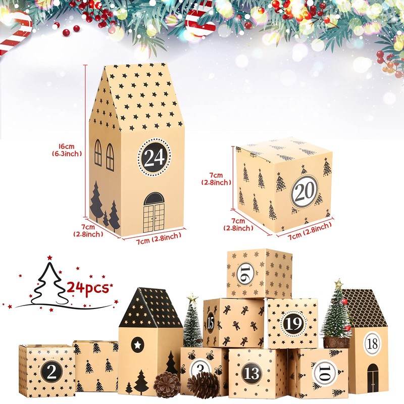 - Package Included: 24pcs advent calendar gift boxes, 1-24 number stickers; 2 different sizes, & different patterns