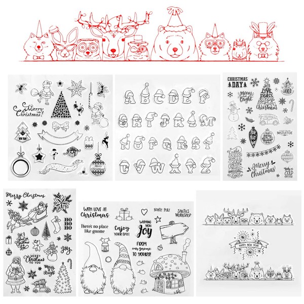 - Christmas Stamps 6.5 x 4.5 inches, 5.7 x 5.7 inches, 6.3 x 5.1 inches, made of silicone, transparent, reusable