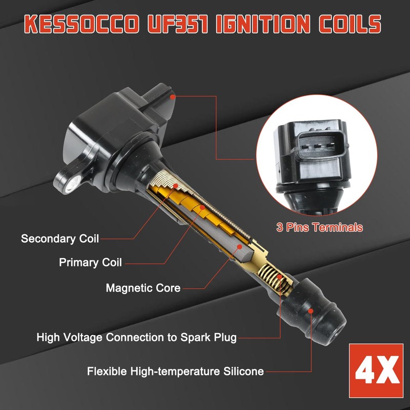 - ?Performance Boost: The exterior of our ignition coils are made of epoxy resin and PPT plastic to prevent the ignition coils from melting due to engine overheating, and the interior of our ignition coils are made of highly conductive copper coils for faster ignition