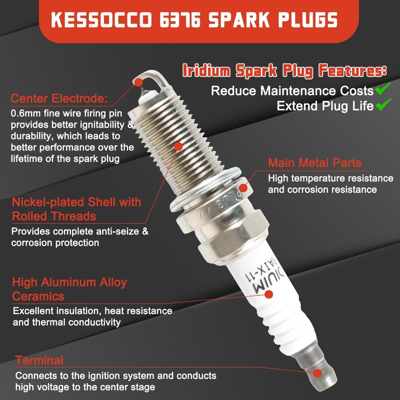 - ?Premium Quality: Compared with ordinary spark plugs, iridium spark plugs have stronger oxidation resistance, electrodes are more resistant to wear and tear, stronger electrical and thermal conductivity, effectively improving ignition efficiency and extending service life