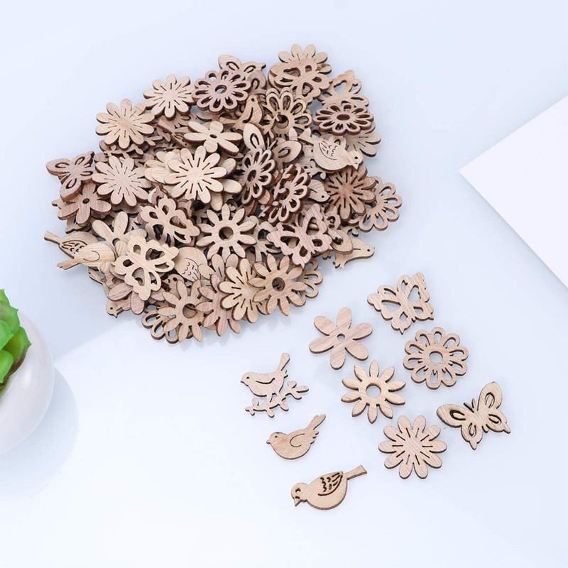 KESYOO Wood Tips Wooden Slices Wooden Pieces Cartoon Wooden Pieces 100pcs Creative Flower Bird Wooden Cards Natural Wood Decoration Photography Accessories DIY Christmas Tree Decoration