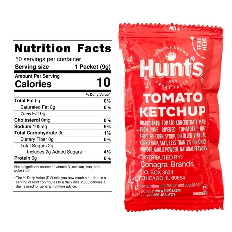 - Hunt's Ketchup - 50 packets 0.3 oz (9g)