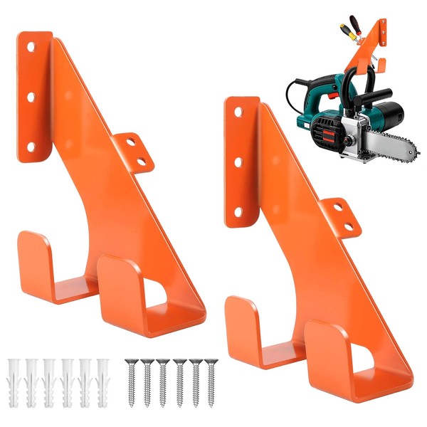 - ORGANIZE YOUR SPACE: Easy to install wall mounted chain saw bracket, fix your saw with this sturdy wall mounted bracket, greatly improve the storage space in your garage, shed, store or workshop. Especially for chain saw storage in a small workshop or tool room.