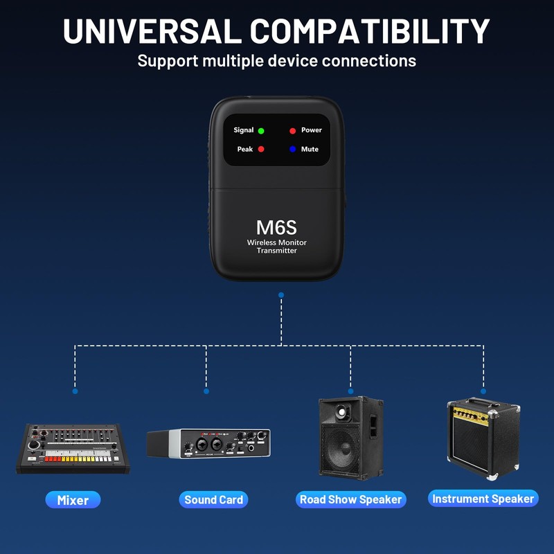 - One TX to more RX--This IEM system breaks the limitation of one to one, which supports up to 6 sets of devices works simultaneously. Perfect for small or medium stage gig and performance. Less than 8 ms latency, and up to 105 dB signal-to-noise ratio that provides crystal clear audio at any volume!