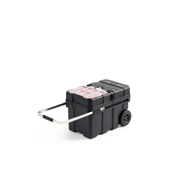 Keter Masterloader Resin Rolling Tool Box with Locking System and Removable Bins – Perfect Organization and Storage Chest for Power Drill, Tape Measure, and Screwdriver Set, Black