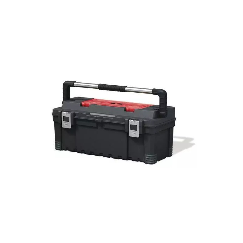 Perfect for pros and serious DIY enthusiasts, this tough yet easy-to-carry tool box organizes and protects your medium-sized tools and smaller items - and makes sure you have everything neatly ordered to do a great job, anywhere. The rugged construction with metal latches keeps the lid closed. Transportation is easy with the full length heavy-duty metal handle with a soft grip rubber touch. This tool box includes a removable organizer with adjustable rubber dividers for organizing a wide variety of small parts. It also features anti-slip corners to keep the box steady on smooth surfaces.