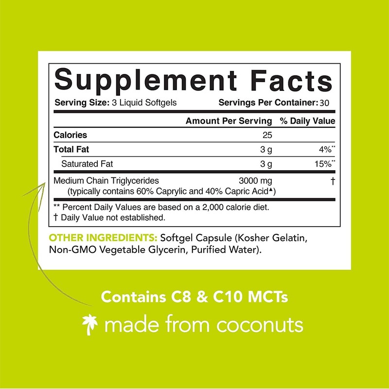 Keto MCT Oil Capsules derived from Coconut Oil | Keto Fuel for The Brain & Body | Derived from Non-GMO Coconuts (120 Softgels)