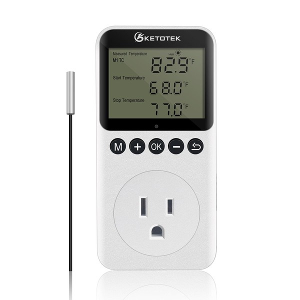 KETOTEK KT3200PRO Digital Temperature Controller Outlet Day Night Thermostat Plug Socket Heating Cooling Temp Controller with Sensor Timer Regulator for Reptile Greenhouse Brewing Refrigerator