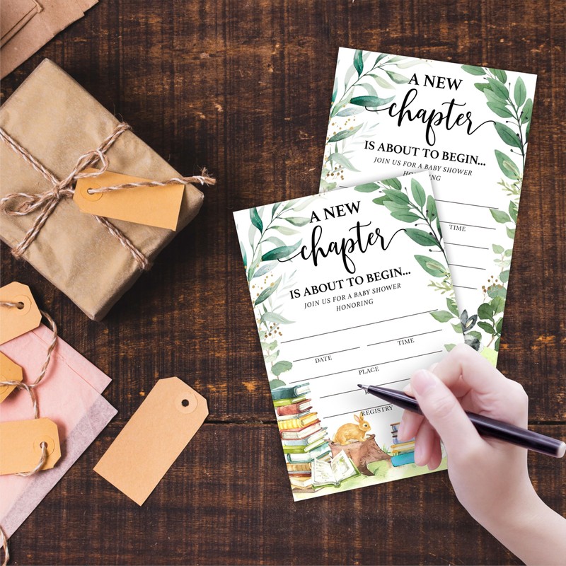 Ketsord Baby Shower Invitations With Envelopes-Set Of 25 A New Chapter Is About To Begin Theme-Greenery Woodland Creature Baby Shower Invitations-Gender Reveal Baby Announcement Invites-04