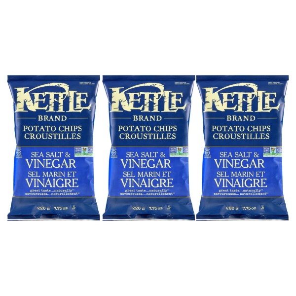 Kettle Chips Sea Salt & Vinegar Chips, 220g/ 7.8 oz (3pk) {Imported from Canada}