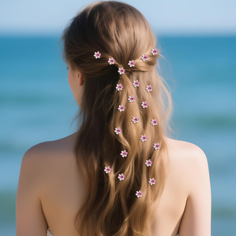 KEUKORZ Rosafarbene Rosa kleine Blumen-Diamant-Haarspangenklammern - 20 Stück Schöne Mini-Rosafarbene Haaraccessoires Haarspitzen für Frauen, Braut-Haarstyling, Anziehen, geeignet für Ferien, Hochzeit
