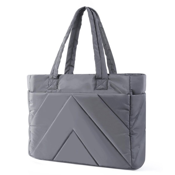 Keureedg Tote Bag for Women, Puffy Work Handbag with Zipper Travel Tote Bag Organizer for Women with Compartments Lightweight Shoulder Bags for Travel Work Teacher Nurse Gym, Grey
