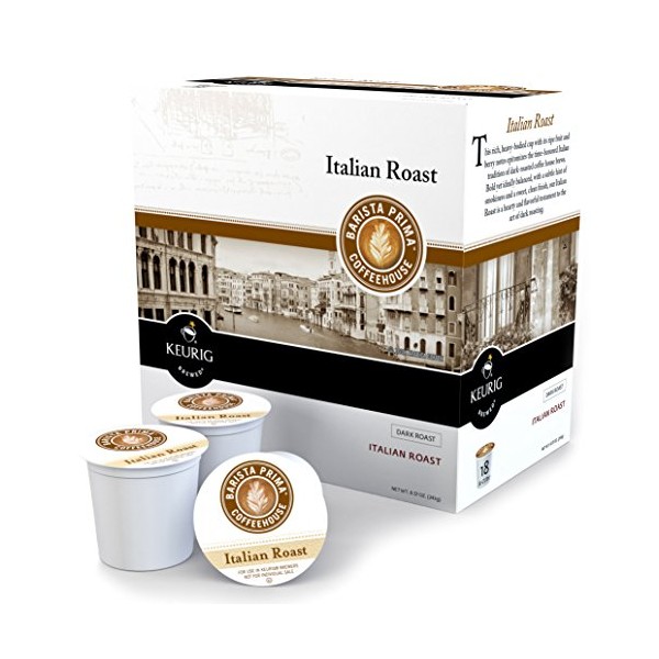 - Includes Barista Prima Coffeehouse Italian Roast Coffee K-Cups for Keurig Brewers, 18 Count (Packaging May Vary)