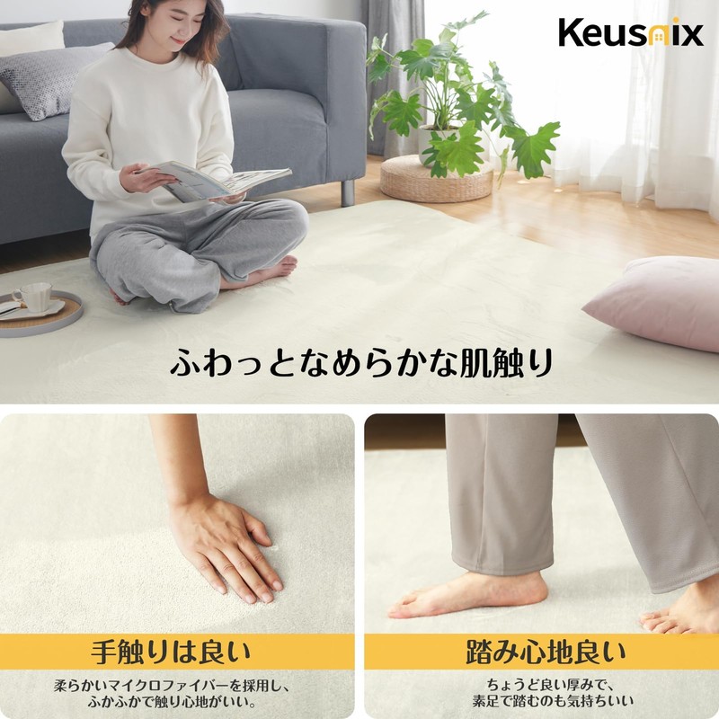 Keusnix Rug, Carpet, Rug, Round, 45.3 inches (115 cm), Anti-Slip, Washable, Dust Mite, Antibacterial, Odor Resistant, Comfortable for All Seasons, Carpet Heating, Hot Carpet, Fluffy Touch, Flannel