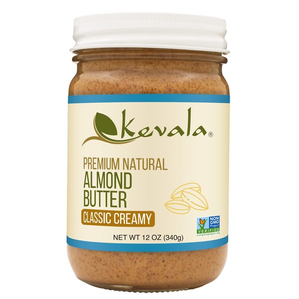 - Kevala Premium Natural Almond Butter Creamy, made with 100% roasted almonds, no added salt, no added sugar, no palm oil, only almond goodness!