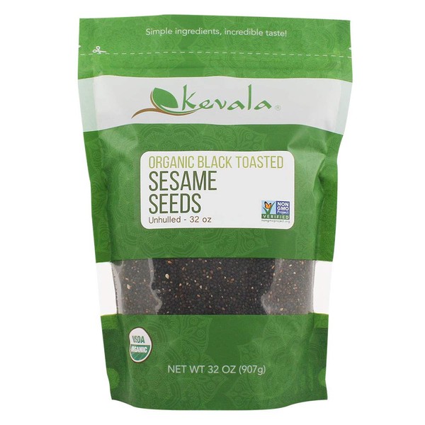 Kevala Organic Black Toasted Sesame Seeds – 32 oz, 2 lb, Gluten Free, Vegan, Roasted, Kosher, Non GMO, Unhulled, USDA Certified