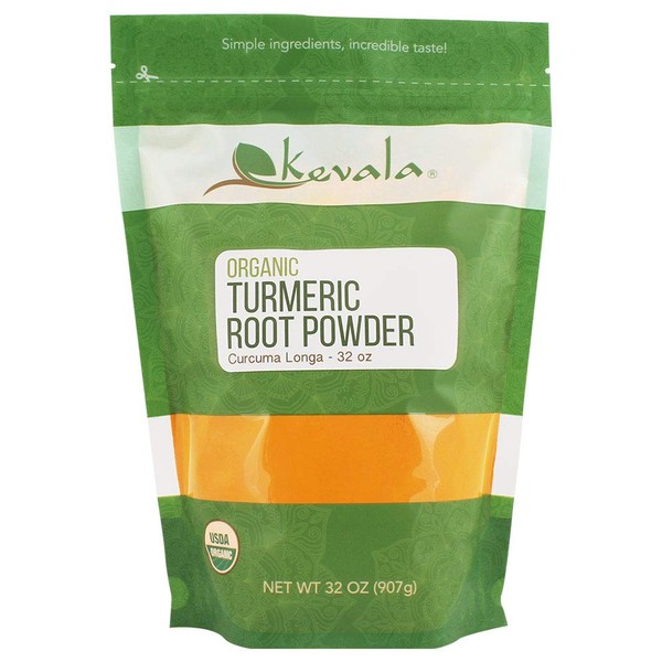kevala Organic Turmeric Root Powder - Gluten Free Curcumin, Vegan Supplement for Cooking, Kitchen Spice, Non GMO and Kosher Product, 2 lb, 32 oz