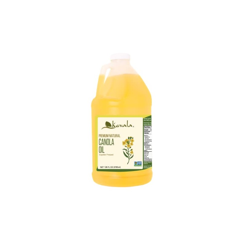 Kevala Canola Oil - Delicate Oil for Cooking and Baking with Mild Scent and Flavor, Made with Carefully Selected non-GMO Seeds, Great for Frying Crispy Snacks and Making Pasta Sauces, 128 fl oz, 1 gal
