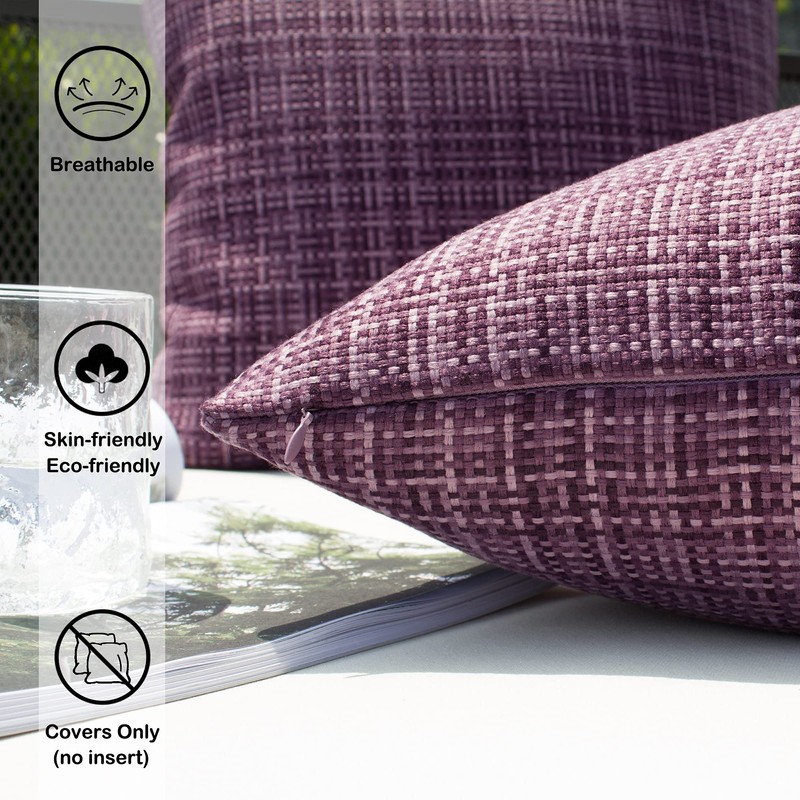 Kevin Textile Pack of 2 Decorative Outdoor Waterproof Throw Pillow Covers Lumbar Pillowcases Modern Cushion Cases for Patio Couch Bench 12 x 20 Inch Violet