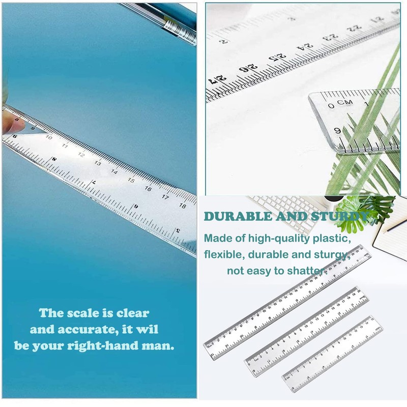 - Great value: clear ruler set includes 5pcs rulers in 3 different sizes: 1pcs 6in/15cm, 1pcs 8in/20cm and 3pcs 12in/30cm