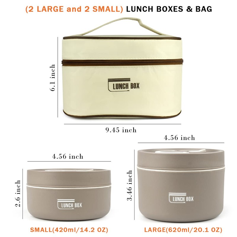 - 【Lunch Box Set 】You will get 4 Insulated bento lunch boxes - two sizes, two large and two small, to meet your different needs. SMALL(14.2OZ/420ml), LARGE (20.1OZ/620ml). With an insulated lunch bag, enhanced insulation, it is very convenient to carry out. Convenient for you to enjoy tasty homemade food at school or at work or going out. Great for store soups, fried rice, pasta or other hot food; can also be used to store cold food such as salads, fruits and more.