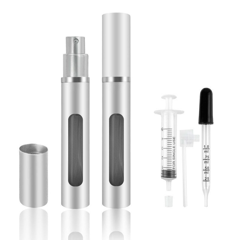 Kewjug 2 Pack Refillable Mini Perfume Atomizer Bottle,Portable Separate Bottles,Travel and Outings Spray Boxes Dispensers 5ml/0.2oz (Silvery)