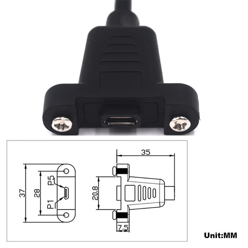 - The micro USB female comes with 2 mounting holes for one mounting plane or panel. Secure the cable with two screws. This is the unique feature of the cable, which is different from others. 2 screws in the package.
