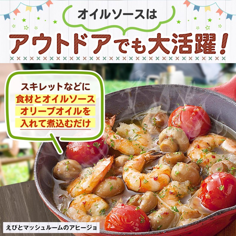 • Vegetable oils (made in Japan), salt, roasted garlic, pork extract, anchovy sauce, mushroom extract, corn, pepper, starch extract powder/seasoning (amino acids, etc.), alcohol, thickening agent (xanthan gum), spice extract, (some parts include dairy, wheat, soy, pork)