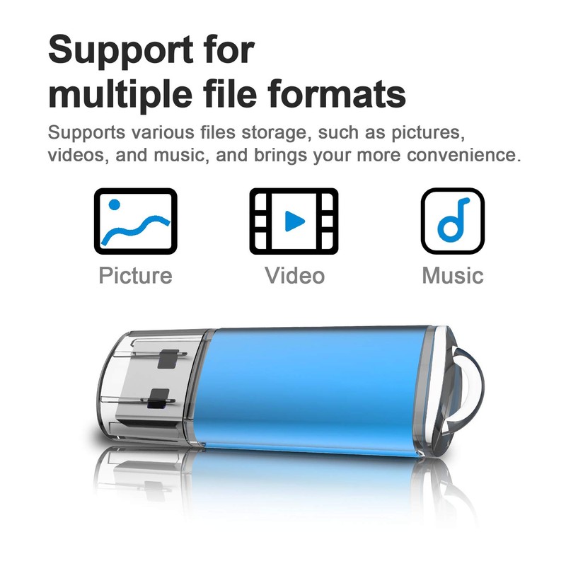 - Plug and Work -The USB memory stick can work after you plug it on your PC. Thumb drive with USB 2.0 Interface: Fast Data transmission speed, suitable for storing digital data for daily usage. The digital data includes music,video, photos, movies, manuals, softwares,etc
