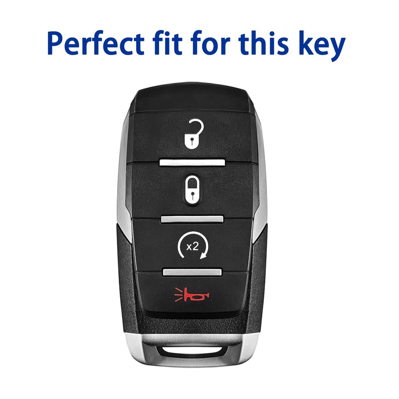Fit for Dodge: 2019-2024 Dodge RAM 1500, 2019-2024 Dodge RAM 2500, 2019-2024 Dodge RAM 3500, 2019-2024 Dodge RAM 4500, 2019-2024 Dodge RAM 5500 Fit for OEM, P/N(Parts Number) or FCC ID: 68442907, 68291689, OHT-4882056, 68401332AA, 68442907AB, 68291689AB, 68291689AC, 7033852AC, 68291689AE, 68291689AD This HSDYES Key Fob Cover is fit for Dodge 4-button key.