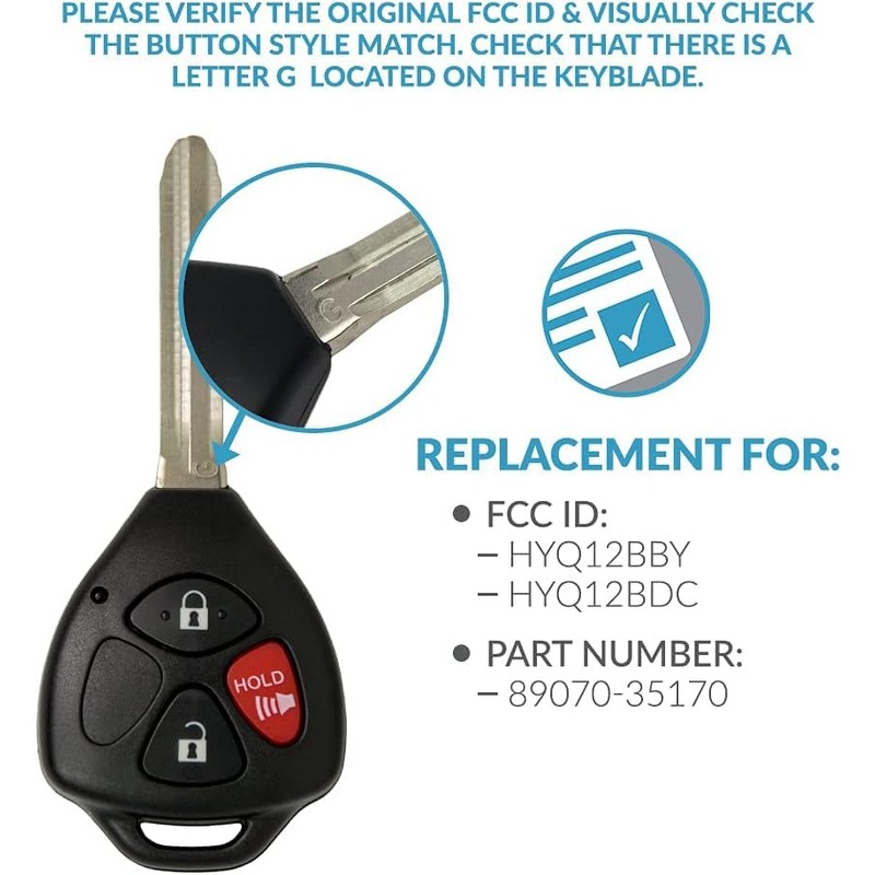 Key Fob Shell Case Replacement Fits for Toyota Camry Corolla Venza Avalon 2007 2008 2009 2010 2011 2012 2013 Keyless Entry Remote Control 4 Button Pad Key Cover (3 Button)