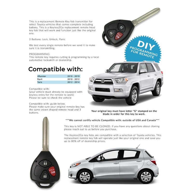 - 【Installation】Our remote key fob shell case is easy to install. Just open your original key fob control and then put the internals like a circuit board in this new key case shell. (Does not require reprogramming). The New Blank key needs to be cut by a hardware store or locksmith.